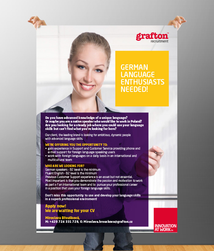 Interní i externí spolupráce, která zahrnovala intenzivní grafický a reklamní full service od inzrce, tvorbu letáků, případových studií i designu docházkového systému.